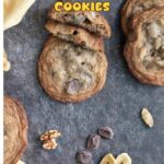These Banana Chocolate Chunk Cookies take all the best flavors of banana bread – banana, chocolate, and walnuts – and bake them into a cookie that’s crisp at the edges, chewy in the center, and full of flavor.